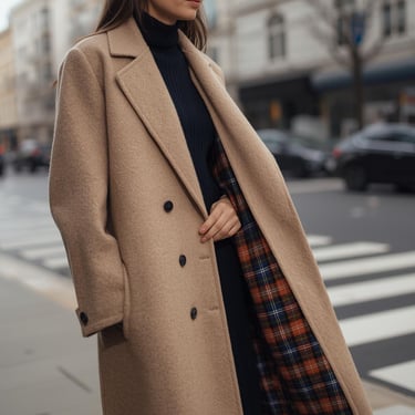 Camel coat + cream knit