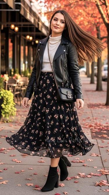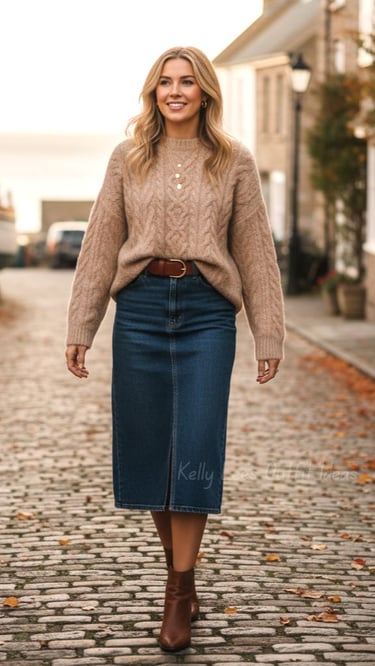 Option A: Long Skirt + Tall Boots (boots hidden under the skirt)