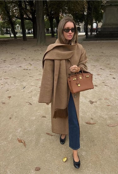 A structured coat collar + simple neck warmer (very European, very chic)
